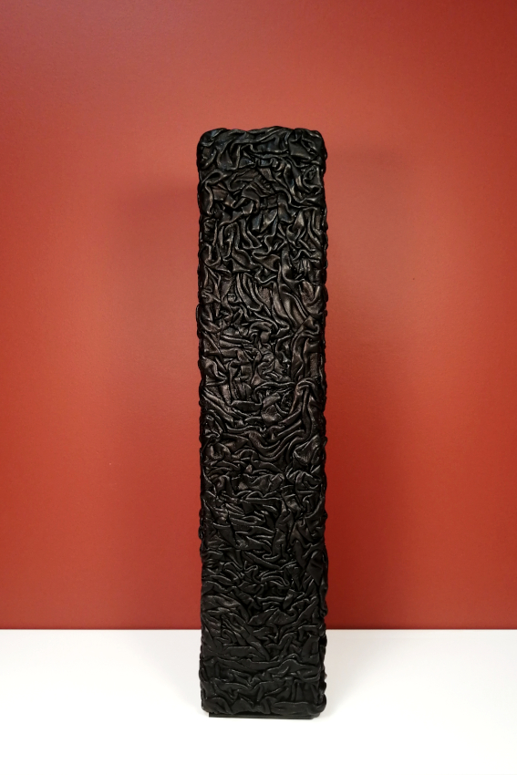 Travail du cuir, ici de l’agneau noir, destiné à recouvrir du mobilier, des panneaux de décoration, des pieds de lampe, etc.